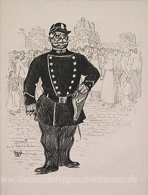 Wir bieten Ihnen eine handgefertigte Reproduktion auf Leinwand des berühmten Kunstwerks 'La Securite des Rues' von Theophile Steinlen, aus dem Reproduktionsmuseum.