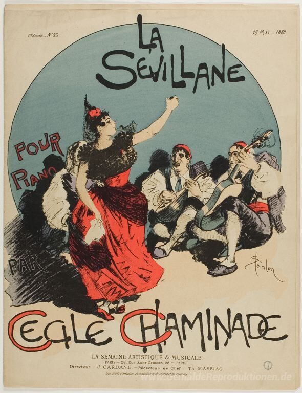 Wir bieten Ihnen eine handgefertigte Reproduktion auf Leinwand des berühmten Kunstwerks 'La Sevillane' von Theophile Steinlen, aus dem Reproduktionsmuseum.