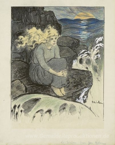 Wir bieten Ihnen eine handgefertigte Reproduktion auf Leinwand des berühmten Kunstwerks 'La Sirene' von Theophile Steinlen, aus dem Reproduktionsmuseum.