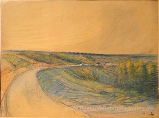 Wir bieten Ihnen eine handgefertigte Reproduktion auf Leinwand des berühmten Kunstwerks 'Landstraße' von Theophile Steinlen, aus dem Reproduktionsmuseum.