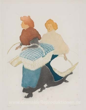 Wir bieten Ihnen eine handgefertigte Reproduktion auf Leinwand des berühmten Kunstwerks 'Laundresses tragen linnen' von Theophile Steinlen, aus dem Reproduktionsmuseum.