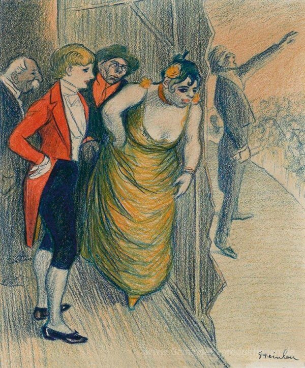 Wir bieten Ihnen eine handgefertigte Reproduktion auf Leinwand des berühmten Kunstwerks 'Le Café-Konzert' von Theophile Steinlen, aus dem Reproduktionsmuseum.