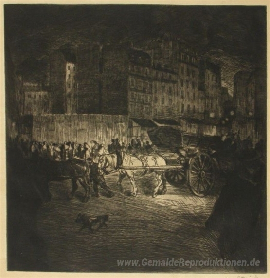 Wir bieten Ihnen eine handgefertigte Reproduktion auf Leinwand des berühmten Kunstwerks 'Le Tombereau' von Theophile Steinlen, aus dem Reproduktionsmuseum.