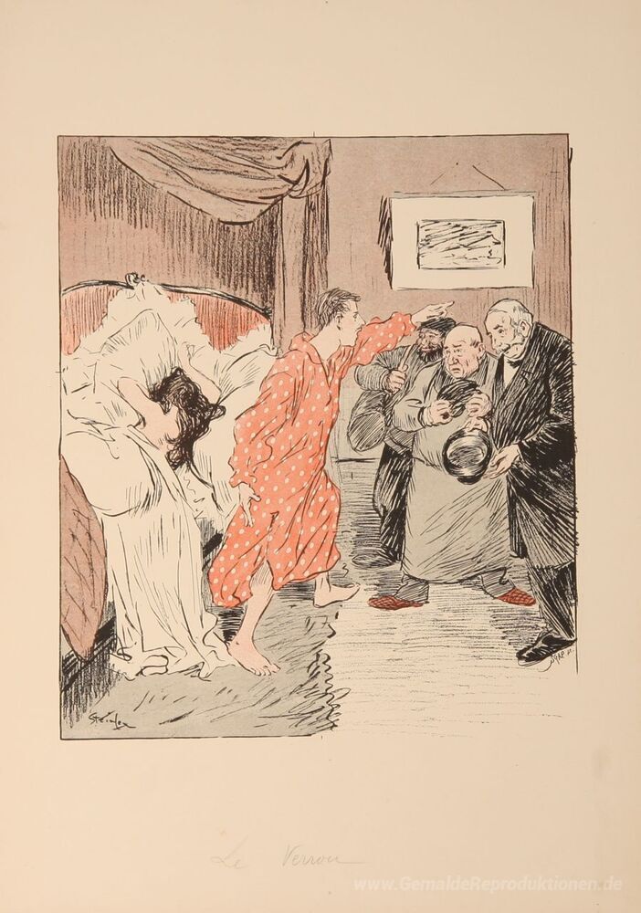 Wir bieten Ihnen eine handgefertigte Reproduktion auf Leinwand des berühmten Kunstwerks 'Le Verrou' von Theophile Steinlen, aus dem Reproduktionsmuseum.
