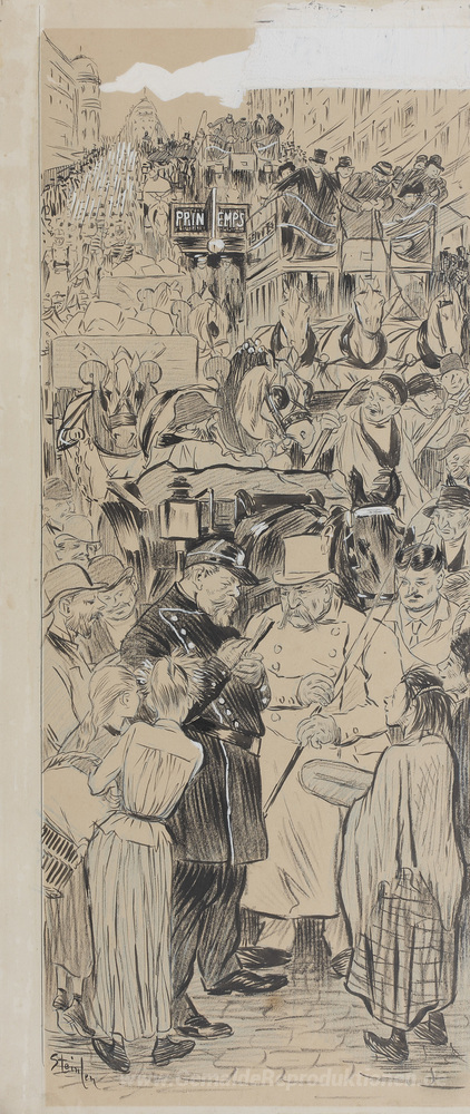 Wir bieten Ihnen eine handgefertigte Reproduktion auf Leinwand des berühmten Kunstwerks 'L'Encombrement' von Theophile Steinlen, aus dem Reproduktionsmuseum.