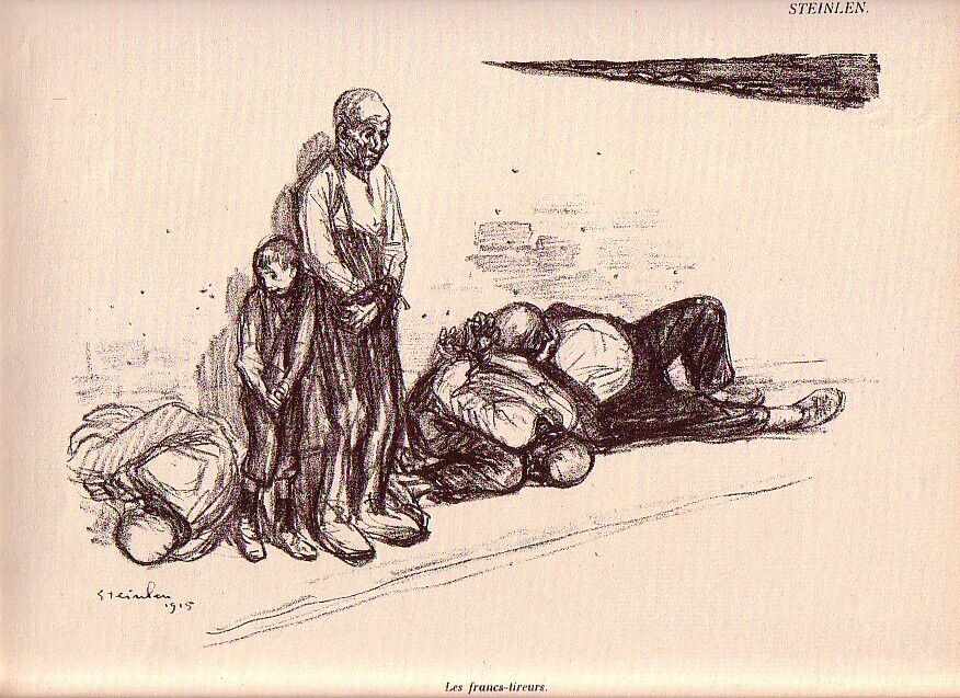 Wir bieten Ihnen eine handgefertigte Reproduktion auf Leinwand des berühmten Kunstwerks 'Les Franktireurs' von Theophile Steinlen, aus dem Reproduktionsmuseum.