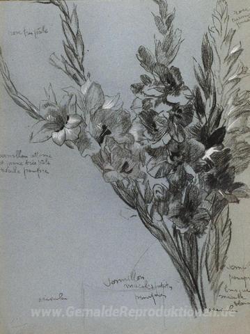 Wir bieten Ihnen eine handgefertigte Reproduktion auf Leinwand des berühmten Kunstwerks 'Les Glaieuls' von Theophile Steinlen, aus dem Reproduktionsmuseum.