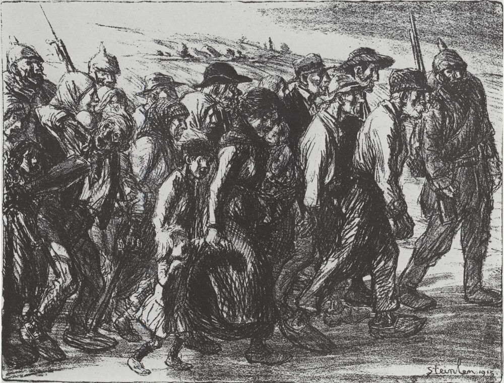Wir bieten Ihnen eine handgefertigte Reproduktion auf Leinwand des berühmten Kunstwerks 'Les Internes - Entree Dans Les Geoles Allemandes' von Theophile Steinlen, aus dem Reproduktionsmuseum.