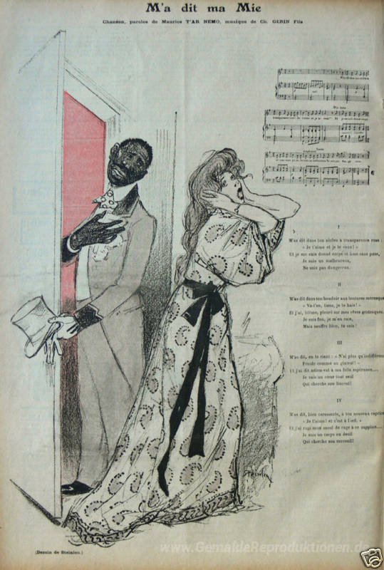 Wir bieten Ihnen eine handgefertigte Reproduktion auf Leinwand des berühmten Kunstwerks 'Ma Ma Mie Dit' von Theophile Steinlen, aus dem Reproduktionsmuseum.