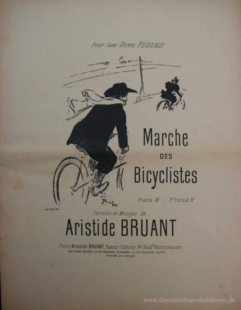 Wir bieten Ihnen eine handgefertigte Reproduktion auf Leinwand des berühmten Kunstwerks 'Marche Des Bicyclistes' von Theophile Steinlen, aus dem Reproduktionsmuseum.