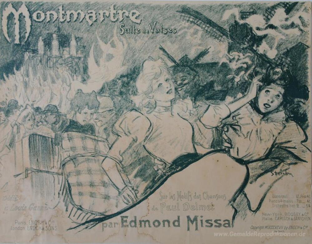 Wir bieten Ihnen eine handgefertigte Reproduktion auf Leinwand des berühmten Kunstwerks 'Montmartre' von Theophile Steinlen, aus dem Reproduktionsmuseum.