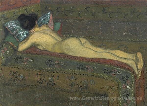Wir bieten Ihnen eine handgefertigte Reproduktion auf Leinwand des berühmten Kunstwerks 'Nackt auf dem Bett' von Theophile Steinlen, aus dem Reproduktionsmuseum.