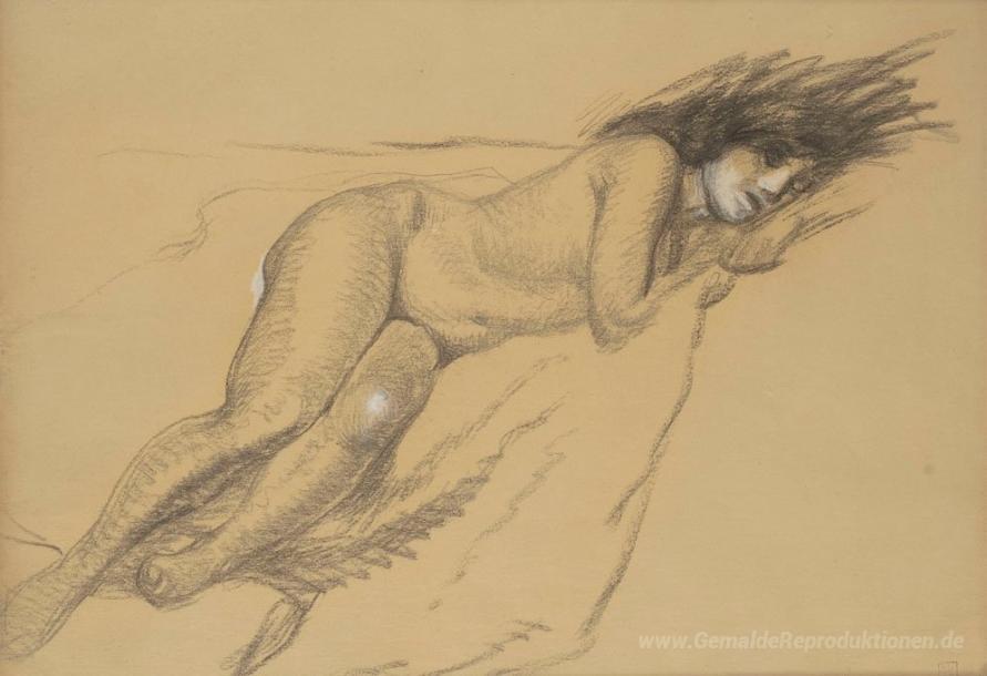Wir bieten Ihnen eine handgefertigte Reproduktion auf Leinwand des berühmten Kunstwerks 'Nu Aux Cheveux Epars' von Theophile Steinlen, aus dem Reproduktionsmuseum.