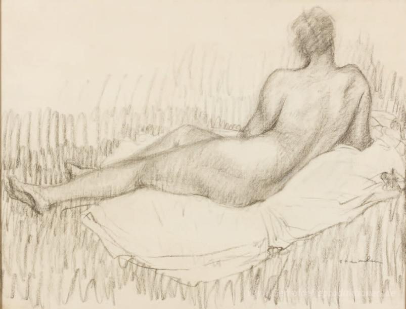 Wir bieten Ihnen eine handgefertigte Reproduktion auf Leinwand des berühmten Kunstwerks 'Nu de Dos Allonge' von Theophile Steinlen, aus dem Reproduktionsmuseum.