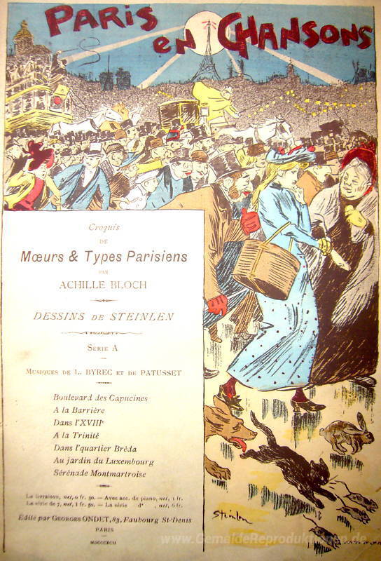 Wir bieten Ihnen eine handgefertigte Reproduktion auf Leinwand des berühmten Kunstwerks 'Paris En Chansons' von Theophile Steinlen, aus dem Reproduktionsmuseum.