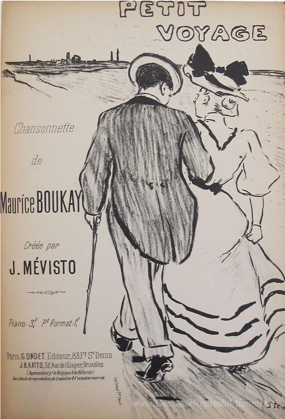 Wir bieten Ihnen eine handgefertigte Reproduktion auf Leinwand des berühmten Kunstwerks 'Petit Voyage' von Theophile Steinlen, aus dem Reproduktionsmuseum.