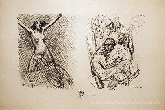 Wir bieten Ihnen eine handgefertigte Reproduktion auf Leinwand des berühmten Kunstwerks 'Planche de Croquis No 2' von Theophile Steinlen, aus dem Reproduktionsmuseum.