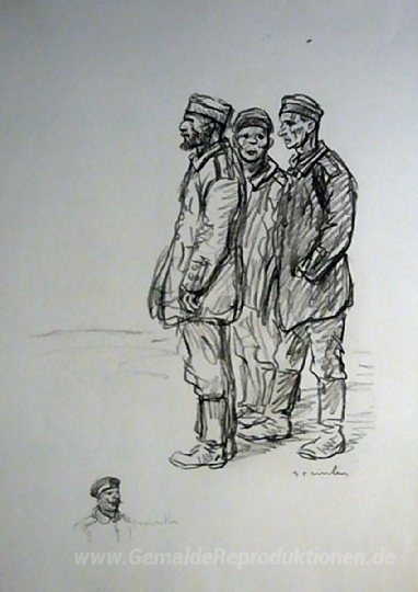 Wir bieten Ihnen eine handgefertigte Reproduktion auf Leinwand des berühmten Kunstwerks 'Prisonniers Boches' von Theophile Steinlen, aus dem Reproduktionsmuseum.