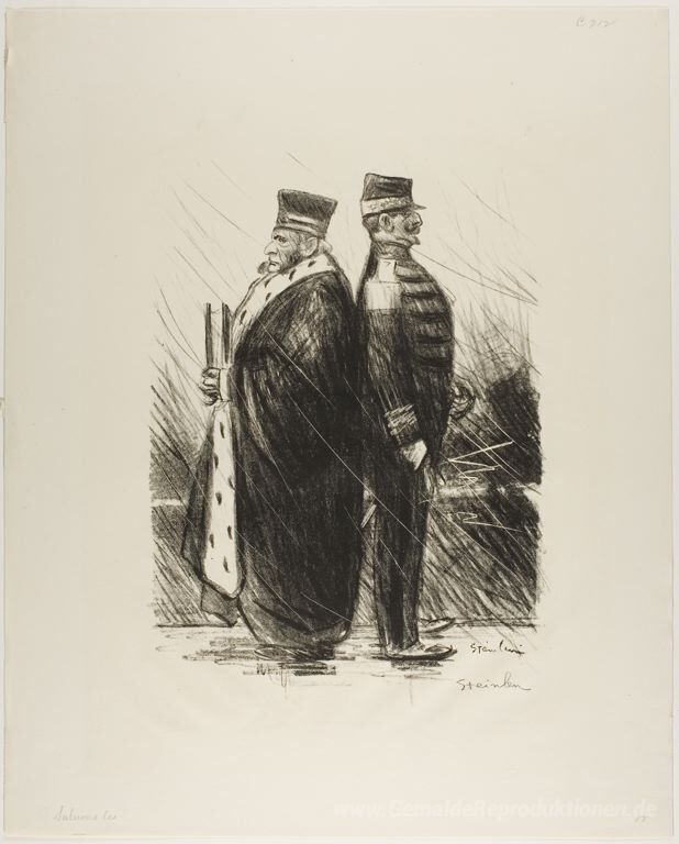 Willkommen in unserer exquisiten Sammlung von Ölgemälden, die nicht nur die Wände Ihres Raumes schmücken, sondern auch eine Geschichte erzählen. Unter den herausragenden Künstlern finden Sie Theophile Steinlen, dessen Werk Saluons Les eindrucksvoll die Atmosphäre des Pariser Lebens Ende des 19. Jahrhunderts einfängt. Steinlens charakteristischer Stil verbindet Realismus mit einem Hauch von Impressionismus, wodurch seine Gemälde lebendig und dynamisch wirken.