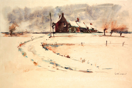 Wir bieten Ihnen eine handgefertigte Reproduktion auf Leinwand des berühmten Kunstwerks 'Schneelandschaft' von Theophile Steinlen, aus dem Reproduktionsmuseum.