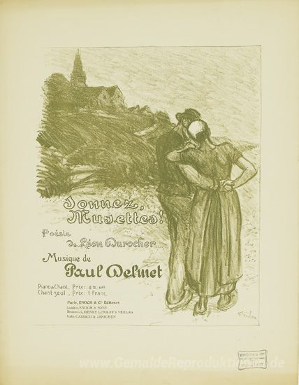Wir bieten Ihnen eine handgefertigte Reproduktion auf Leinwand des berühmten Kunstwerks 'Sonnez Musettes' von Theophile Steinlen, aus dem Reproduktionsmuseum.