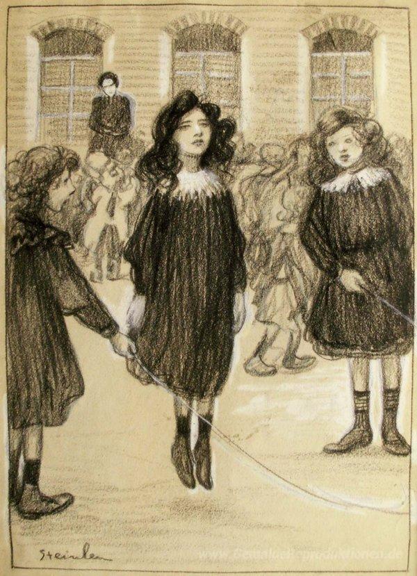 Wir bieten Ihnen eine handgefertigte Reproduktion auf Leinwand des berühmten Kunstwerks 'Sprungseil' von Theophile Steinlen, aus dem Reproduktionsmuseum.
