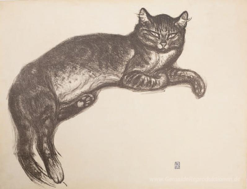 Wir bieten Ihnen eine handgefertigte Reproduktion auf Leinwand des berühmten Kunstwerks 'Studie für L'Hiver - Katze auf einem Kissen' von Theophile Steinlen, aus dem Reproduktionsmuseum.
