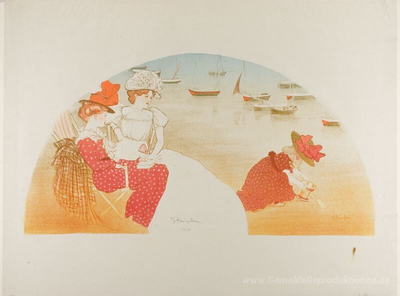 Wir bieten Ihnen eine handgefertigte Reproduktion auf Leinwand des berühmten Kunstwerks 'Sur La Plage' von Theophile Steinlen, aus dem Reproduktionsmuseum.