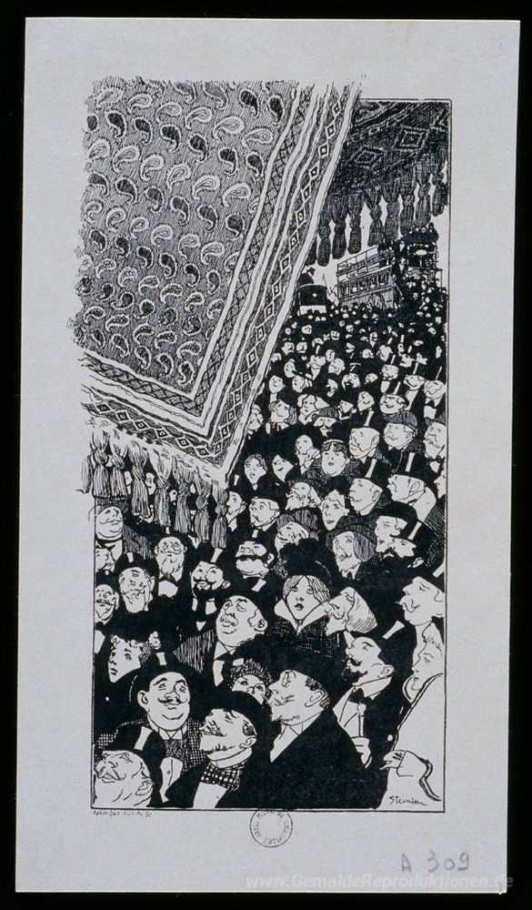 Wir bieten Ihnen eine handgefertigte Reproduktion auf Leinwand des berühmten Kunstwerks 'Tapis Clichy' von Theophile Steinlen, aus dem Reproduktionsmuseum.