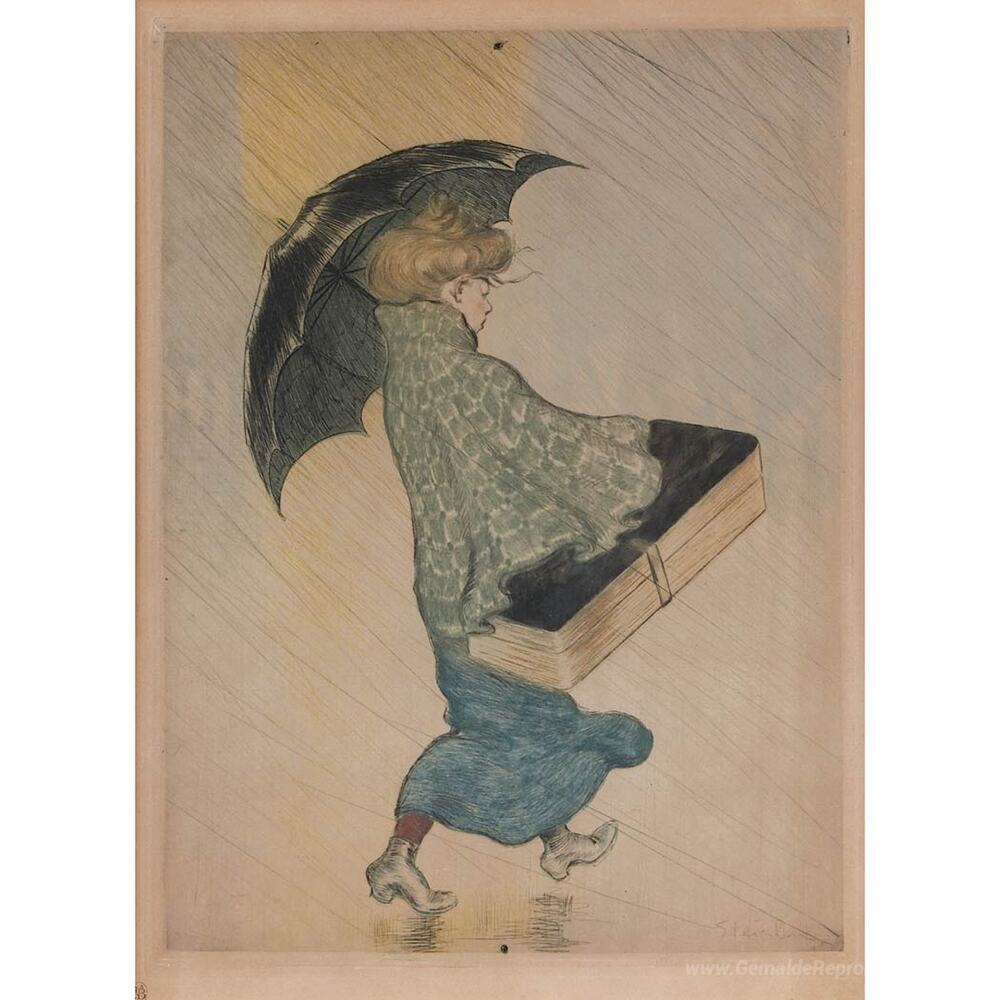 Wir bieten Ihnen eine handgefertigte Reproduktion auf Leinwand des berühmten Kunstwerks 'Trottin Sous la pluie' von Theophile Steinlen, aus dem Reproduktionsmuseum.
