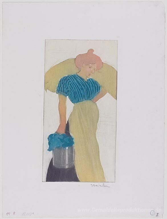 Wir bieten Ihnen eine handgefertigte Reproduktion auf Leinwand des berühmten Kunstwerks 'Wäscherin' von Theophile Steinlen, aus dem Reproduktionsmuseum.