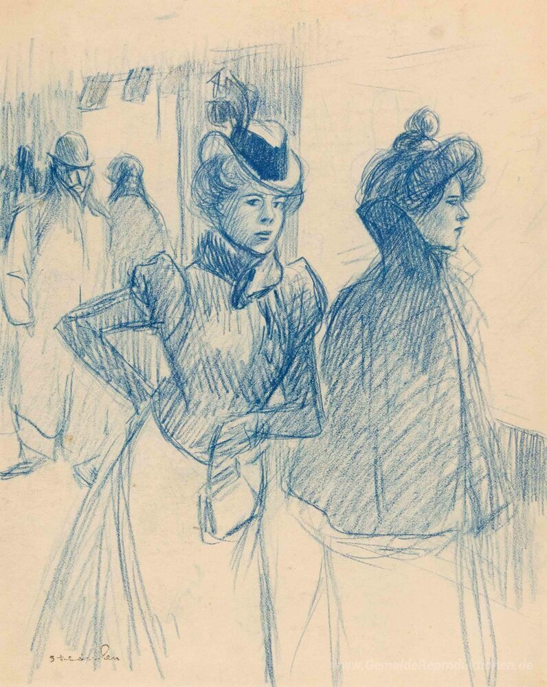 Wir bieten Ihnen eine handgefertigte Reproduktion auf Leinwand des berühmten Kunstwerks 'Zwei elegante Frauen' von Theophile Steinlen, aus dem Reproduktionsmuseum.
