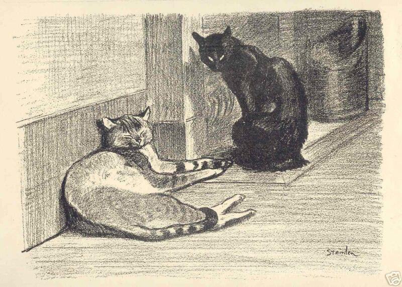 Die Verwendung von kraftvollen Farben und geschmeidigen Pinselstrichen in Zwei Katzen verleiht dem Werk eine lebendige Atmosphäre, die den Betrachter in ihren Bann zieht. Dieses Gemälde ist nicht nur ein Blickfang, sondern schafft auch eine warme und einladende Stimmung in jedem Raum. Lassen Sie sich von der Wirkung der Kunst inspirieren und verleihen Sie Ihrem Zuhause einen Hauch von Eleganz und Stil mit den Meisterwerken von Theophile Steinlen.