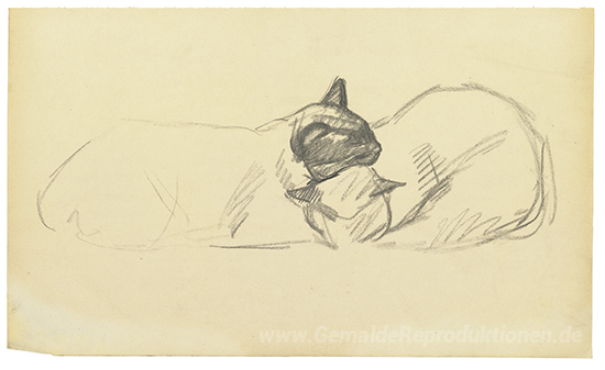 Wir bieten Ihnen eine handgefertigte Reproduktion auf Leinwand des berühmten Kunstwerks 'Zwei schlafenden Katzen' von Theophile Steinlen, aus dem Reproduktionsmuseum.