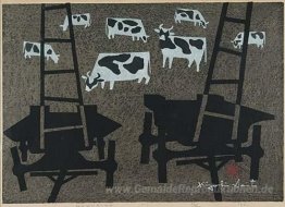 Kachoga. Falcon auf einem Tannenzweig, aufgehende Sonne über