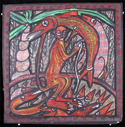 Willkommen in der faszinierenden Welt der Ölgemälde, wo Kunst und Emotion miteinander verschmelzen. Unsere Kollektion präsentiert Meisterwerke wie das beeindruckende Werk Affe mit Fisch des legendären Künstlers Twins Seven Seven. Dieser talentierte Künstler, bekannt für seine einzigartigen Techniken und afro-kubanischen Stil, verleiht seinen Gemälden eine unverwechselbare Tiefe und Ausdruckskraft. j