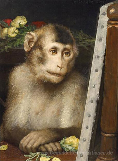 Wir bieten Ihnen eine handgefertigte Reproduktion auf Leinwand des berühmten Kunstwerks 'Affe' von Gabriel von Max, aus dem Reproduktionsmuseum.