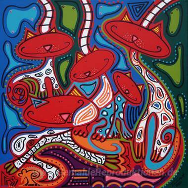 Wir bieten Ihnen eine handgefertigte Reproduktion auf Leinwand des berühmten Kunstwerks 'Camouflage Katzen' von Mr. Dejo, aus dem Reproduktionsmuseum.
