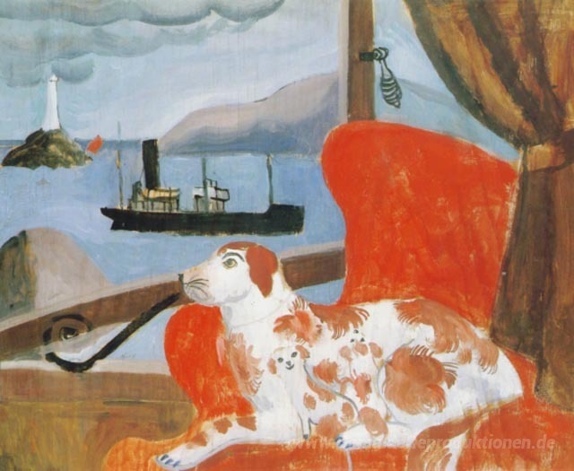 Wir bieten Ihnen eine handgefertigte Reproduktion auf Leinwand des berühmten Kunstwerks 'China Hund in einem Fenster von St. Ives' von Christopher Wood, aus dem Reproduktionsmuseum.