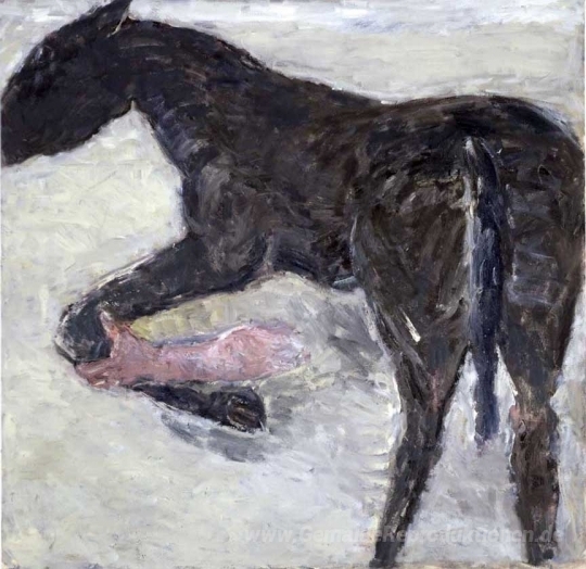 Wir bieten Ihnen eine handgefertigte Reproduktion auf Leinwand des berühmten Kunstwerks 'Chix' von Susan Rothenberg, aus dem Reproduktionsmuseum.