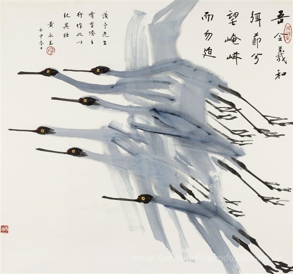 Willkommen in unserer exquisiten Kollektion von Ölgemälden, wo Kunst und Emotionen harmonisch verschmelzen. Jedes Kunstwerk erzählt eine einzigartige Geschichte, und heute stellen wir das beeindruckende Werk Cranes des talentierten Künstlers Huang Yongyu vor. Huang Yongyu ist bekannt für seine faszinierenden Darstellungen von Natur und Tieren, die in seinem charakteristischen Stil lebendig werden. Seine Arbeiten kombinieren traditionelle Techniken mit modernen Interpretationen und schaffen dabei eine unverwechselbare Ästhetik.