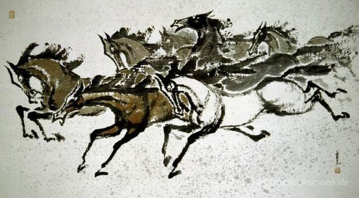 Wir bieten Ihnen eine handgefertigte Reproduktion auf Leinwand des berühmten Kunstwerks 'Das Bild einer Herde von Pferden' von Owon, aus dem Reproduktionsmuseum.