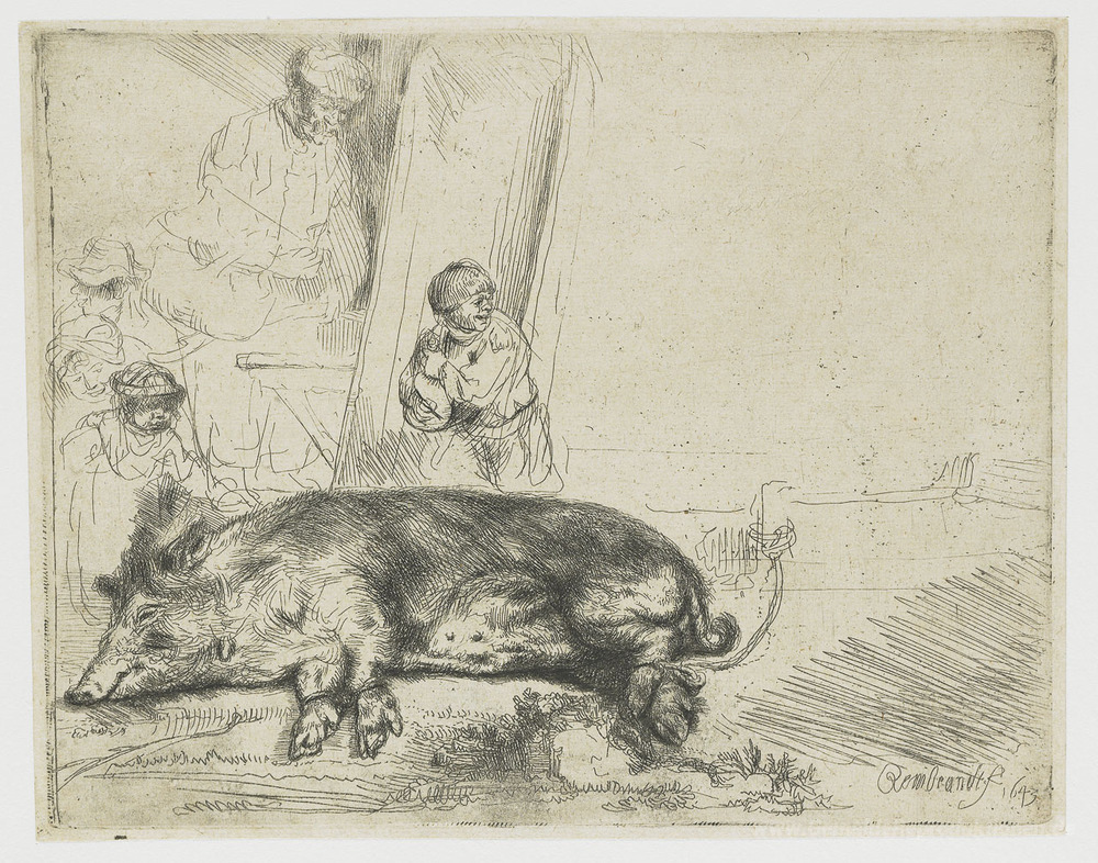 Wir bieten Ihnen eine handgefertigte Reproduktion auf Leinwand des berühmten Kunstwerks 'Das Schwein' von Rembrandt, aus dem Reproduktionsmuseum.