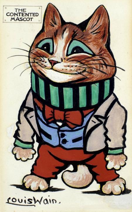 Wir bieten Ihnen eine handgefertigte Reproduktion auf Leinwand des berühmten Kunstwerks 'Das zufriedene MASCOT' von Louis Wain, aus dem Reproduktionsmuseum.