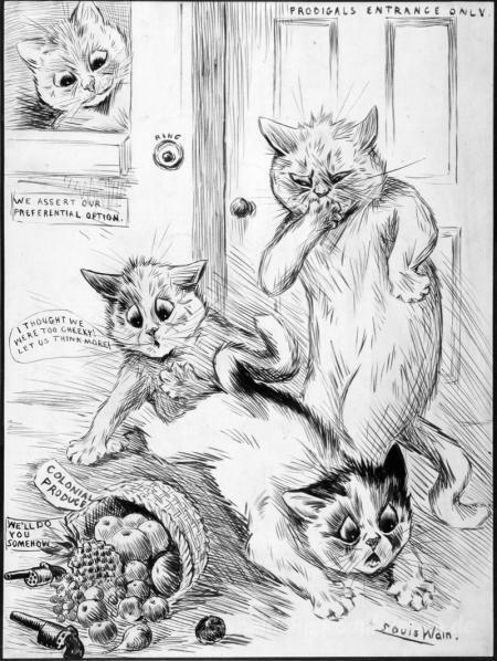 Wir bieten Ihnen eine handgefertigte Reproduktion auf Leinwand des berühmten Kunstwerks 'DIE schlug DOOR' von Louis Wain, aus dem Reproduktionsmuseum.