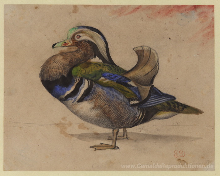 Wir bieten Ihnen eine handgefertigte Reproduktion auf Leinwand des berühmten Kunstwerks 'Ein Mandarin Drake' von Eugene Delacroix, aus dem Reproduktionsmuseum.