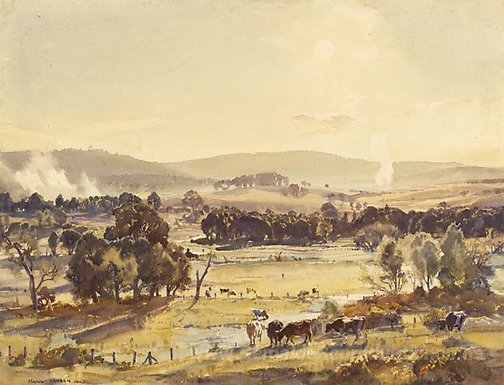 Wir bieten Ihnen eine handgefertigte Reproduktion auf Leinwand des berühmten Kunstwerks 'Ein Nachmittag im Herbst' von Hans Heysen, aus dem Reproduktionsmuseum.