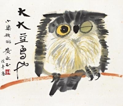 Wir bieten Ihnen eine handgefertigte Reproduktion auf Leinwand des berühmten Kunstwerks 'Eine Eule' von Huang Yongyu, aus dem Reproduktionsmuseum.