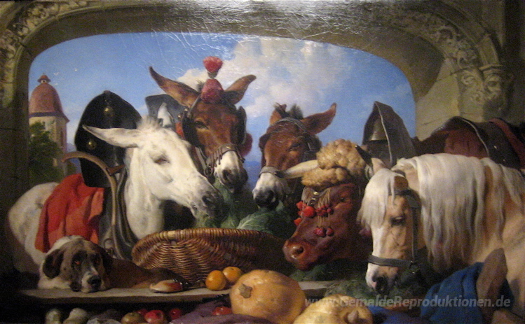 Wir bieten Ihnen eine handgefertigte Reproduktion auf Leinwand des berühmten Kunstwerks 'Einer Gruppe von Tieren, Genf' von Edwin Henry Landseer, aus dem Reproduktionsmuseum.