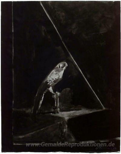 Wir bieten Ihnen eine handgefertigte Reproduktion auf Leinwand des berühmten Kunstwerks 'Falke' von Nathan Oliveira, aus dem Reproduktionsmuseum.
